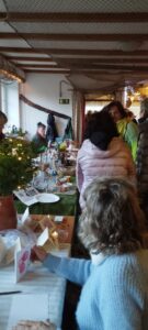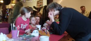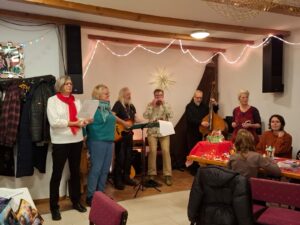 Dieses Jahr hat der Kulturverein bei den Planungen seines mittlerweile traditionellen Adventsmarktes in der Gaststätte „Am alten Hafen“ einen Schwerpunkt auf Selbst-Mach-Angebote für Geschenke an Lieben oder sich selbst gelegt: Es konnten Advents- und Weihnachtskarten aquarelliert oder Sandkerzen und Baumschmuck hergestellt werden, Keramiktassen oder -teller mit Farbe gestaltet und später nach dem Brennen abgeholt oder aber mit Heilsteinen charmante Armbänder kreiert werden. Es war berührend anzusehen, mit wieviel Freude, Liebe und Lust dieses Angebot wahrgenommen und mit welchem Stolz das eigene Werk gezeigt wurde. Dies gilt ebenso für den „Fuhlendorfer Adventsvolkschor“: In Anlehnung an Goethes Osterspanziergang könnte man ausrufen: Nicht „dieses Gewimmel möchte ich sehen“, sondern: „Dieses Singen möchte ich hören“! Aber hört selbst im unteren Videoausschnitt rein. Und hier an dieser Stelle sei auch mit großem Dank festgehalten: Die Band mit ihrer selbst angekündigten „handgemachten Live-Musik aus der musikalischen Mottenkiste“ war grandios und hat die Stimmung im Saal weihnachtlich eingefärbt.Â